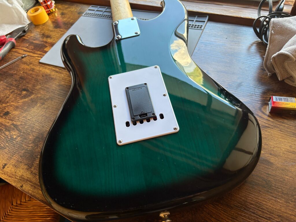 そこで……トレモロスプリングを真ん中1本外して、キャビティに電池をぶち込みました🔧